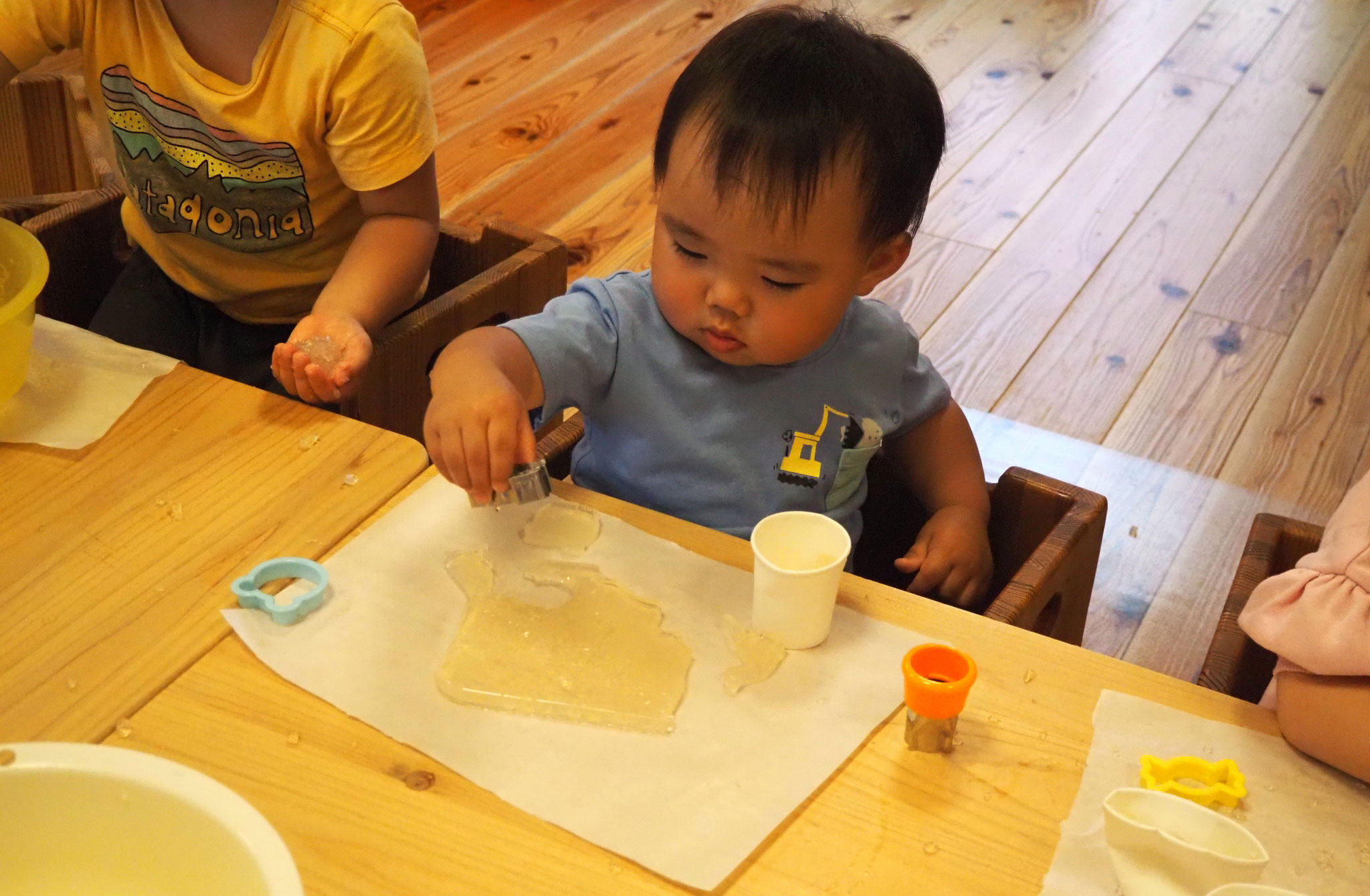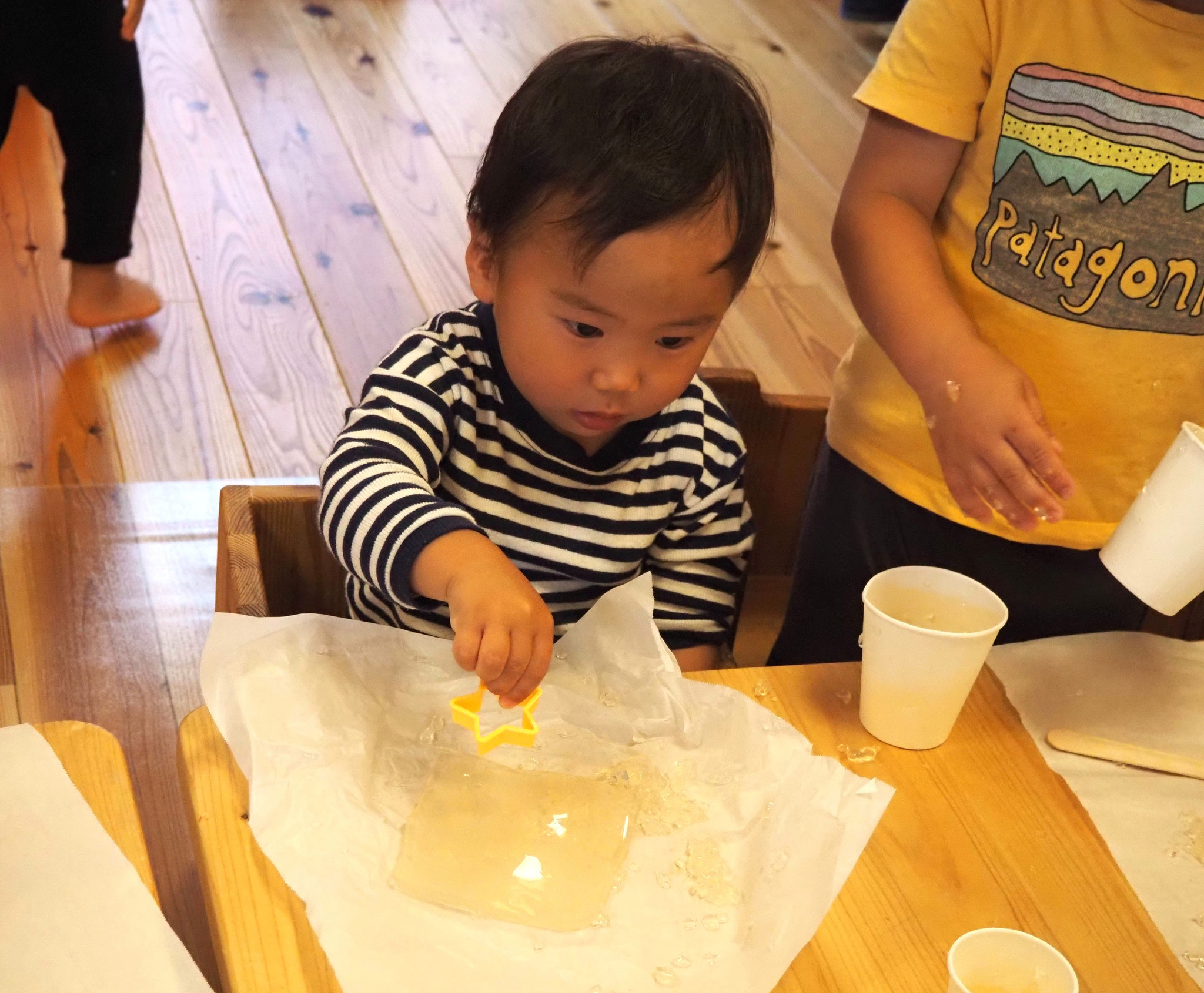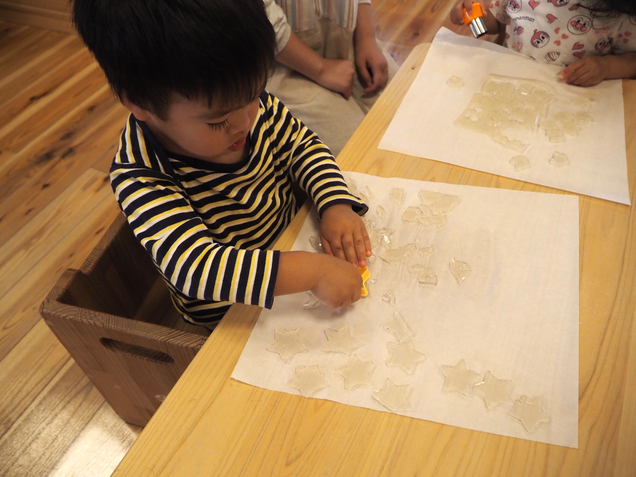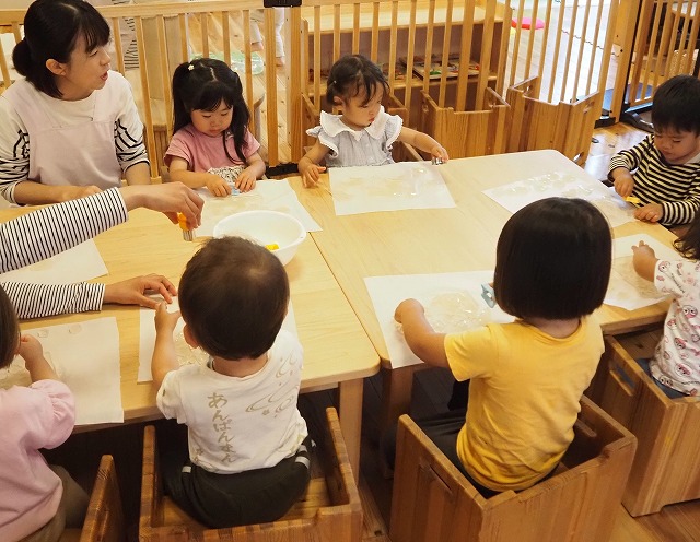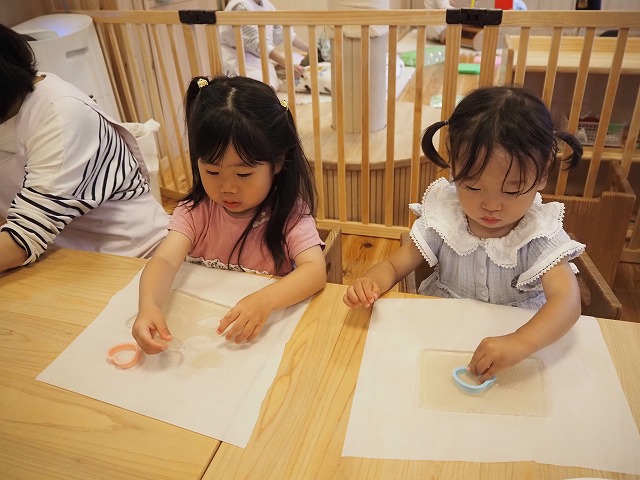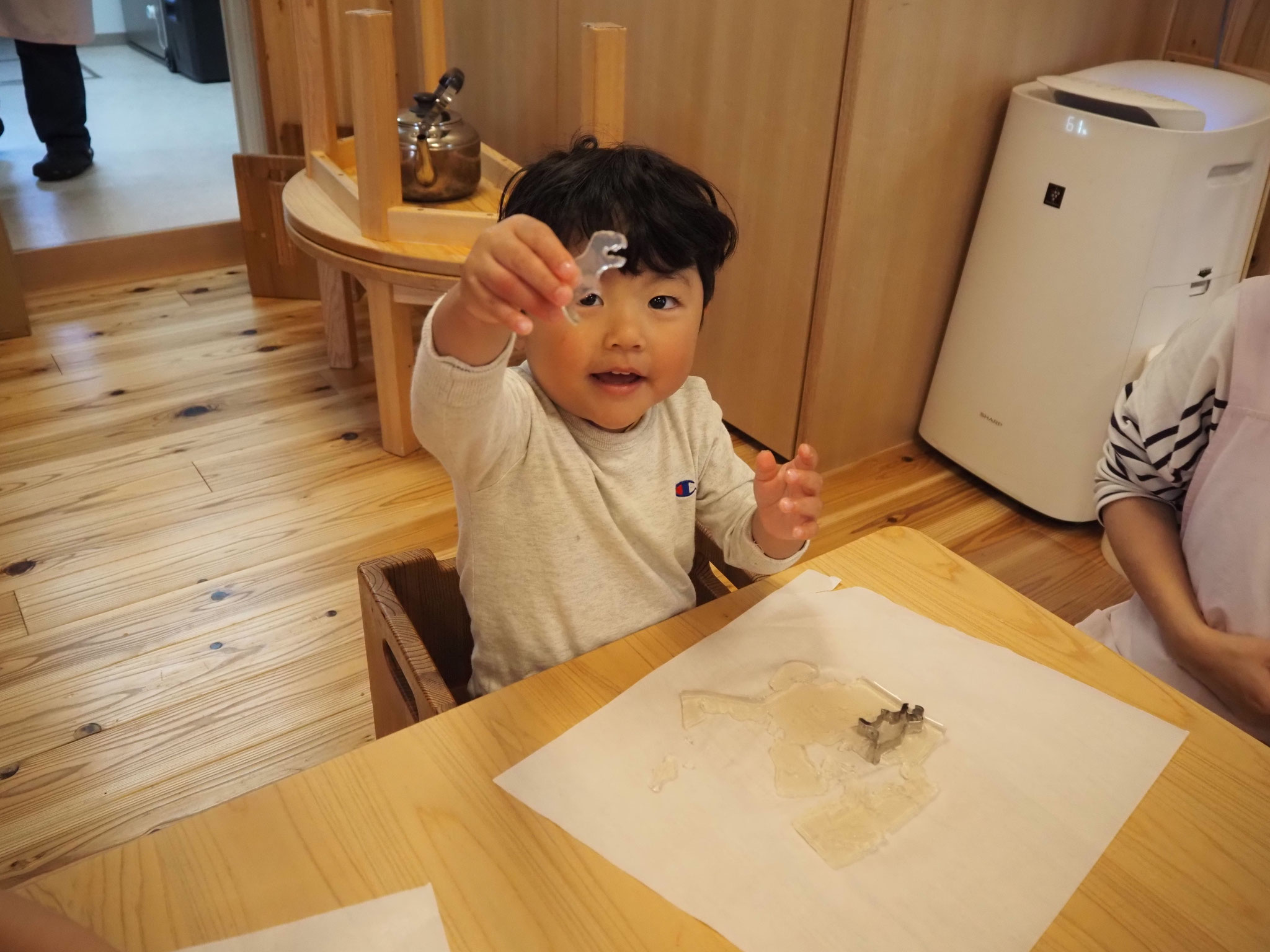 寒天遊びでは、型抜きをしたり手でつぶしたり、完食を感じながら遊んでいましたよ!
