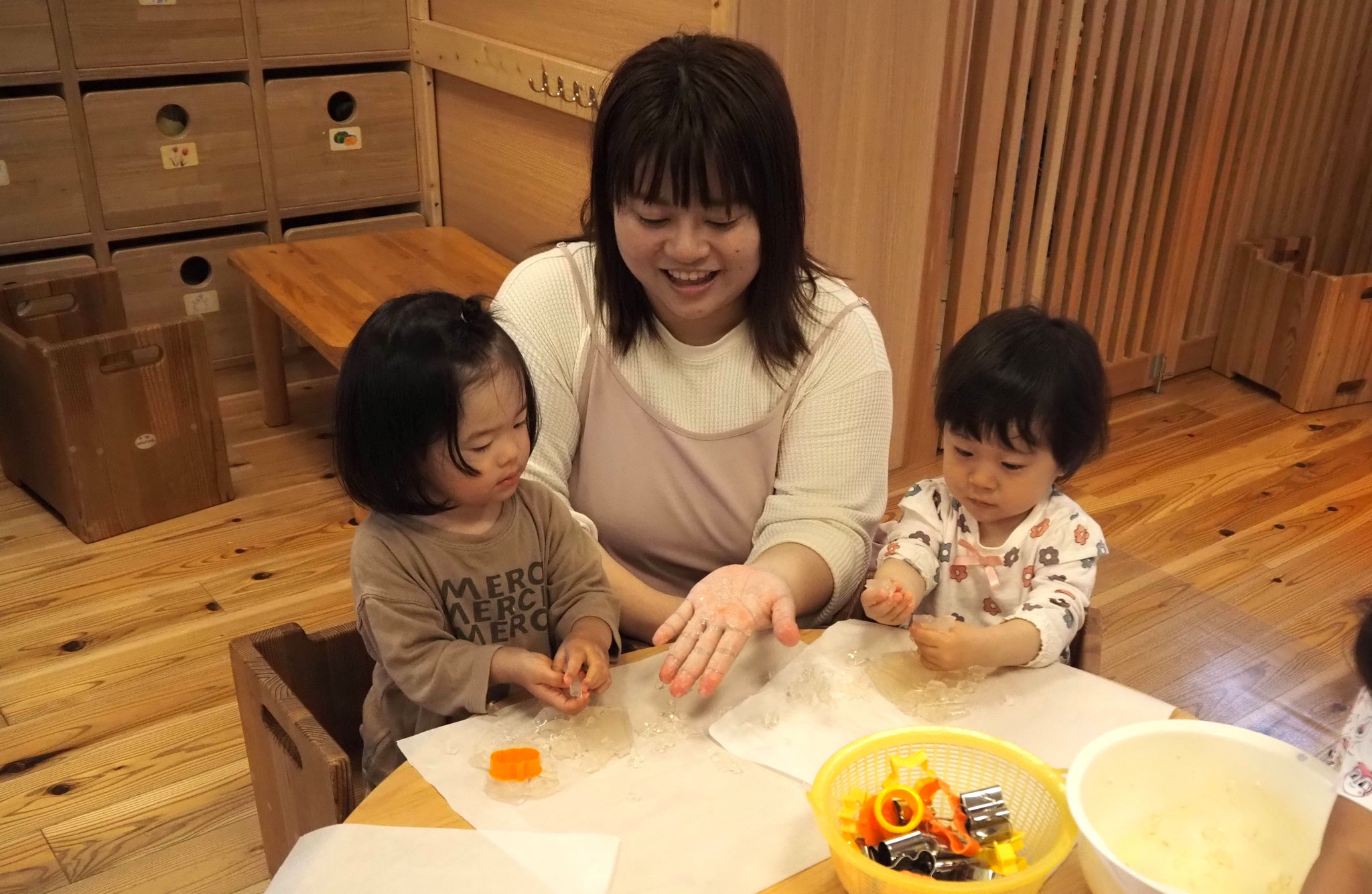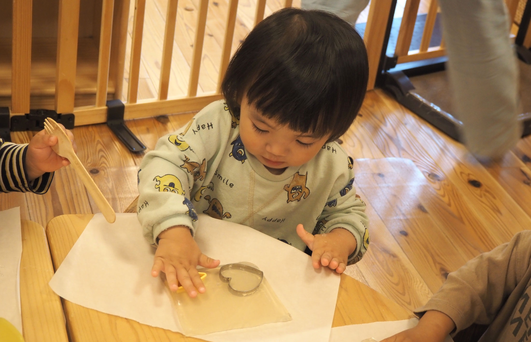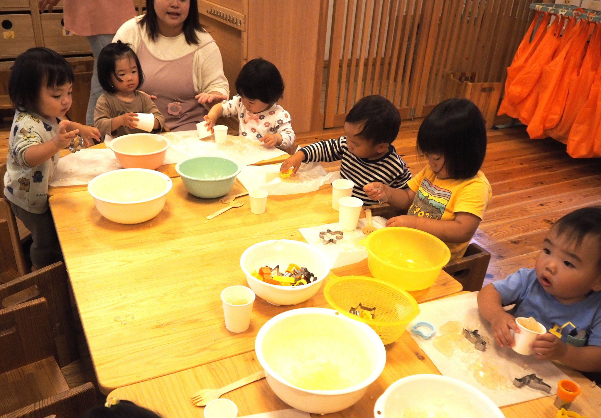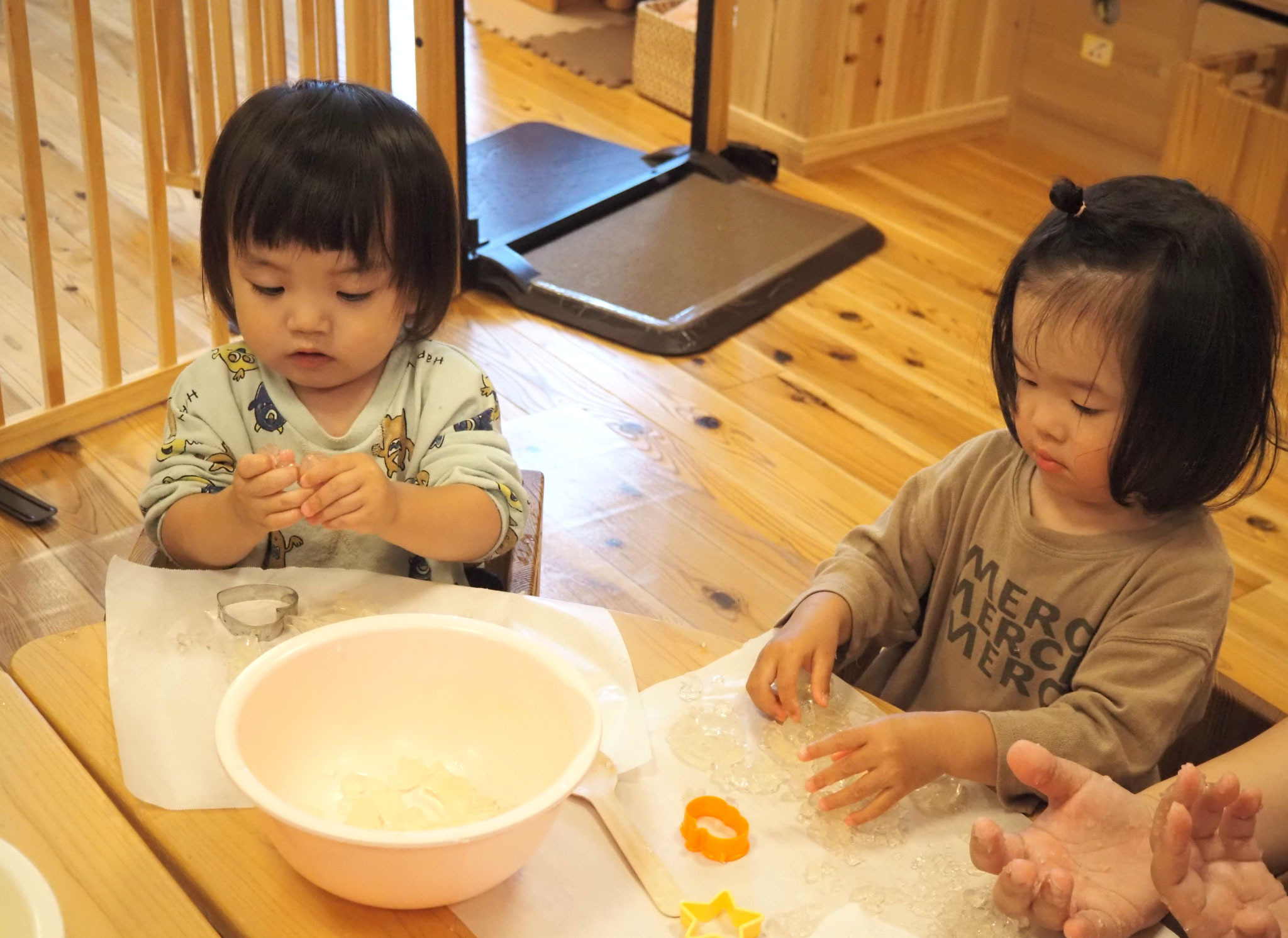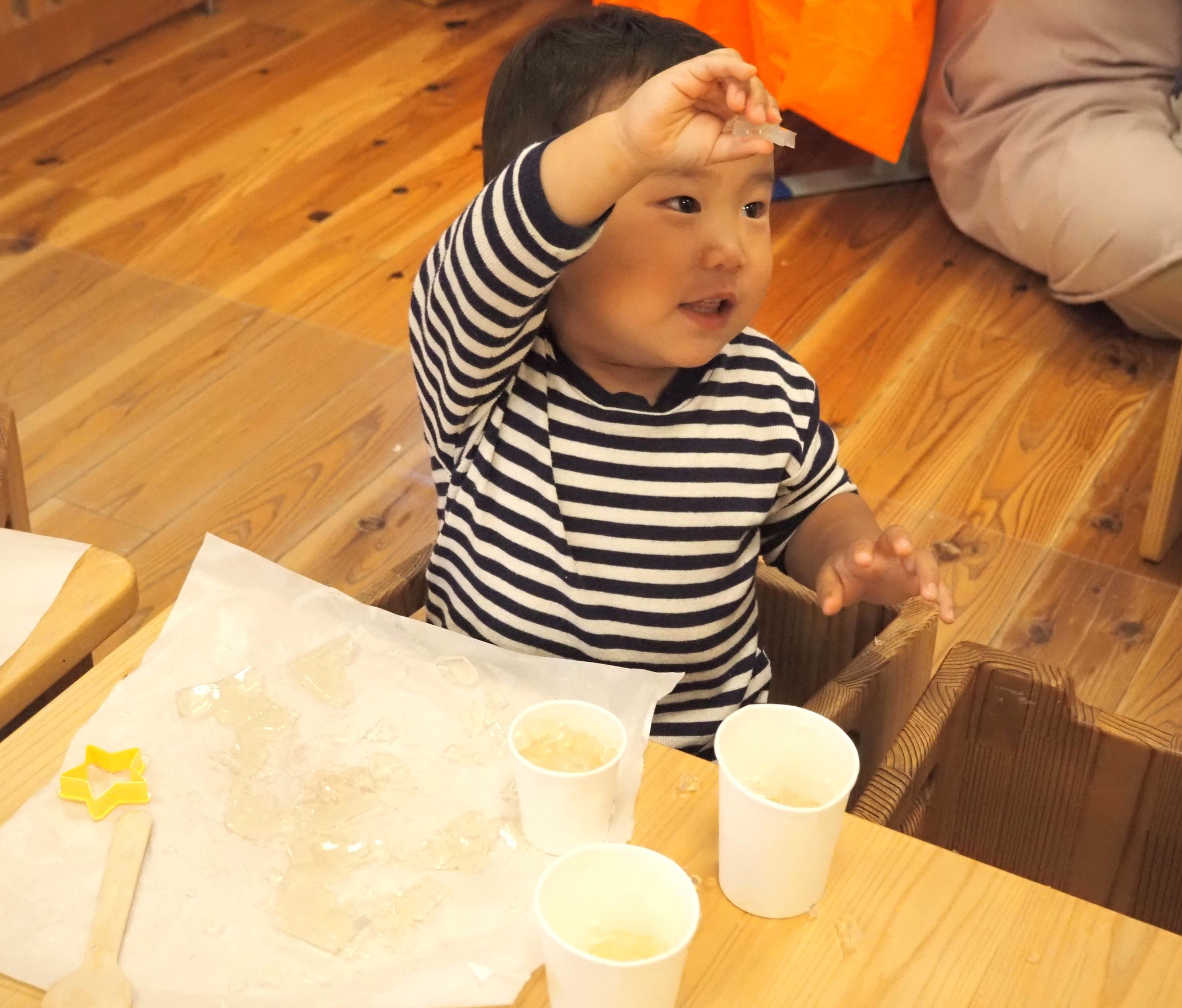 寒天遊びでは、型抜きをしたり手でつぶしたり、完食を感じながら遊んでいましたよ!