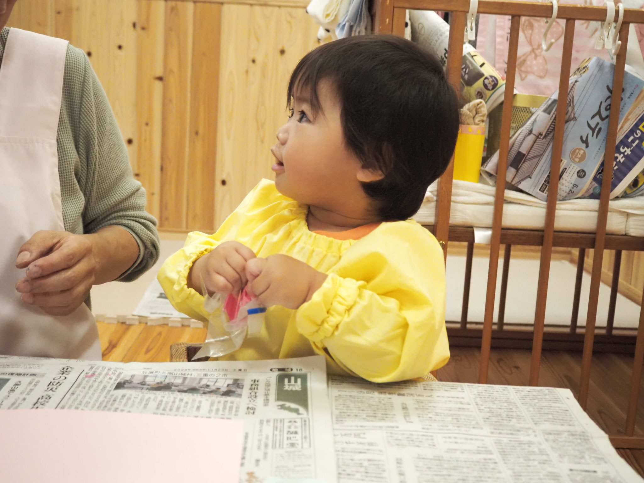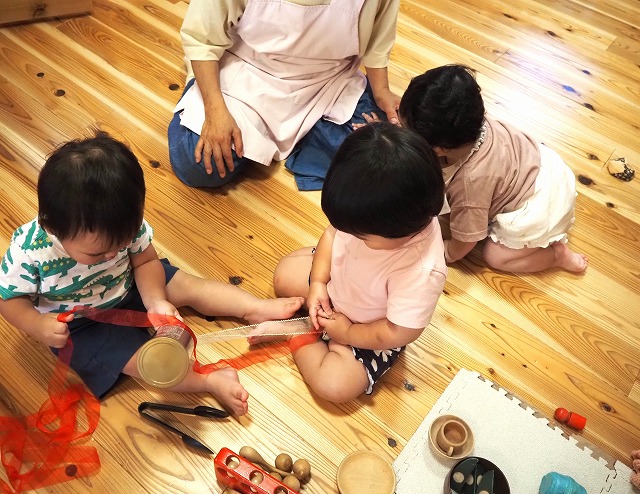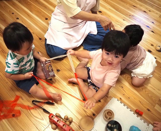 お部屋ではお店屋さんごっこをしたり、手づくりおもちゃでお友だちと楽しんで遊びました。
