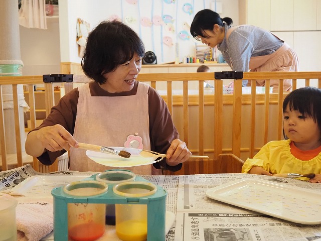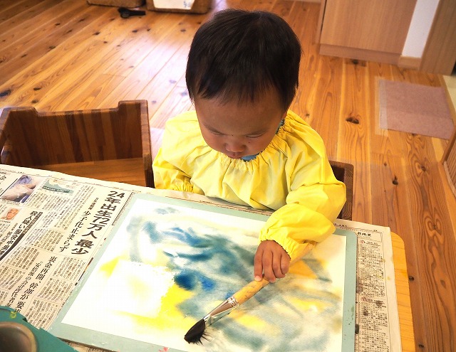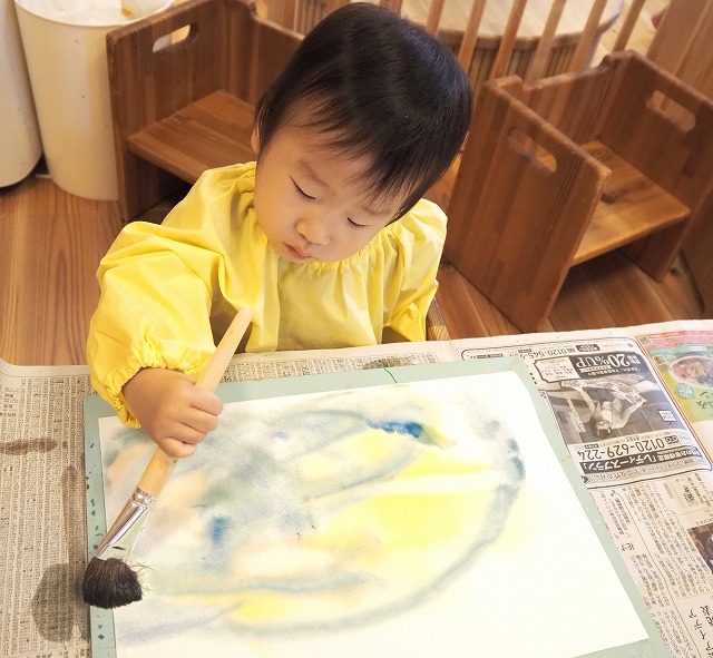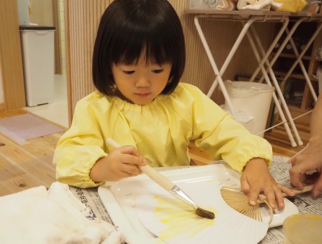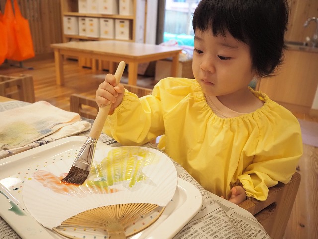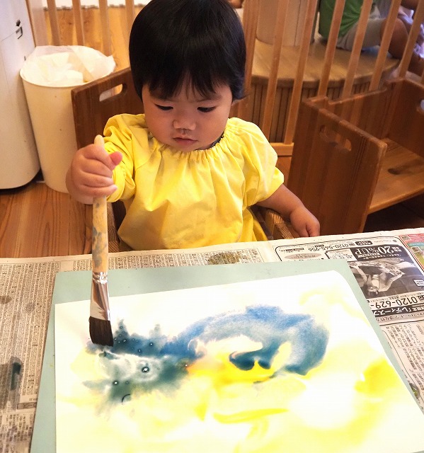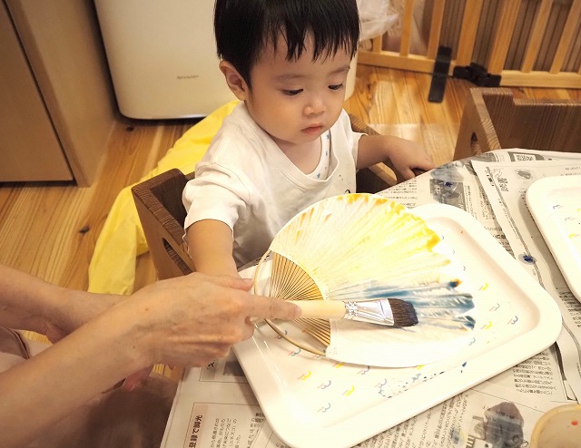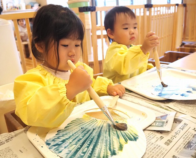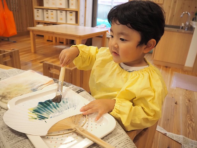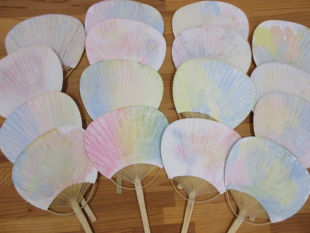 🎐和紙のうちわににじみ絵を楽しみました。お家で涼しい風を感じてくださいね。
