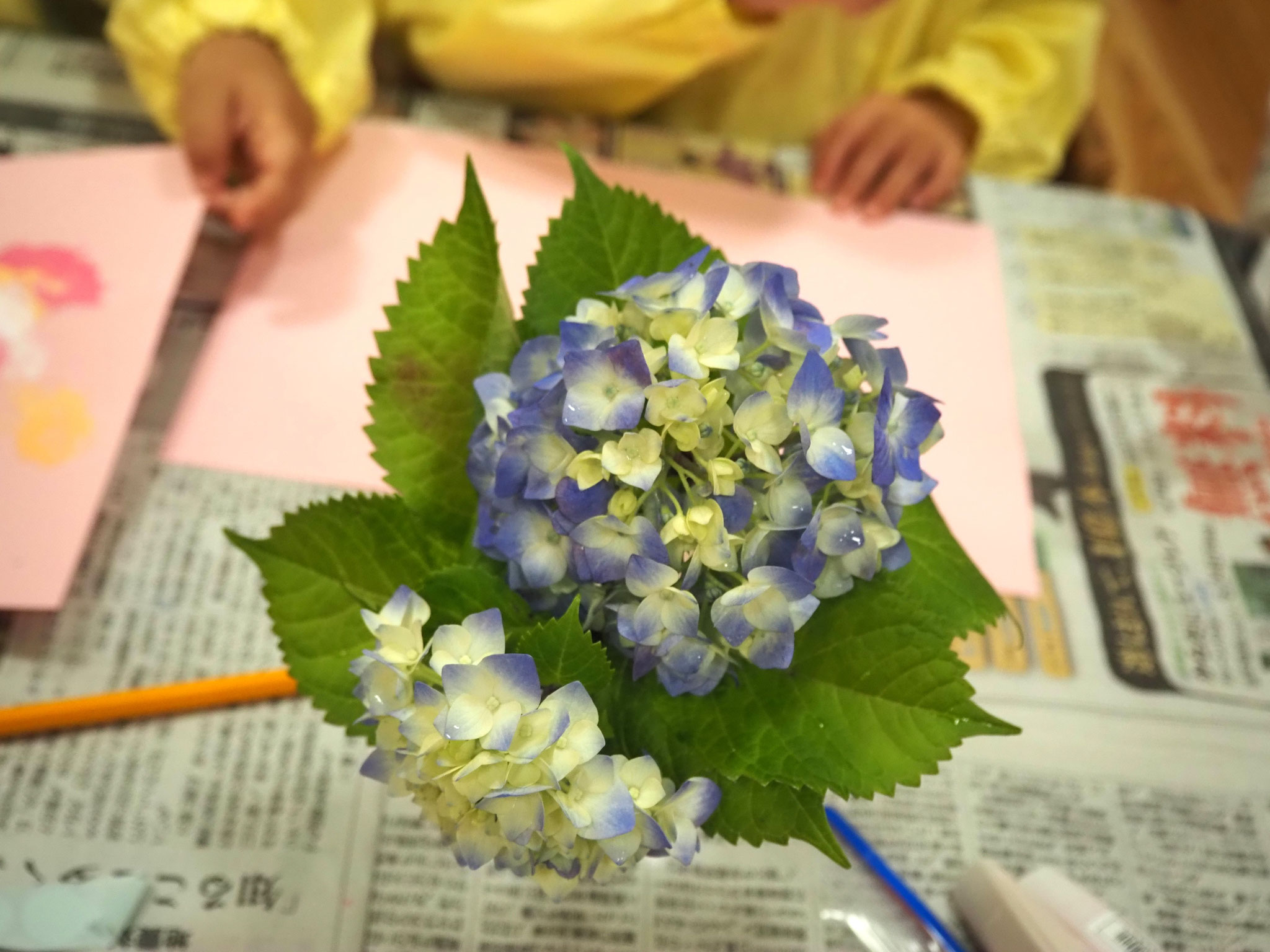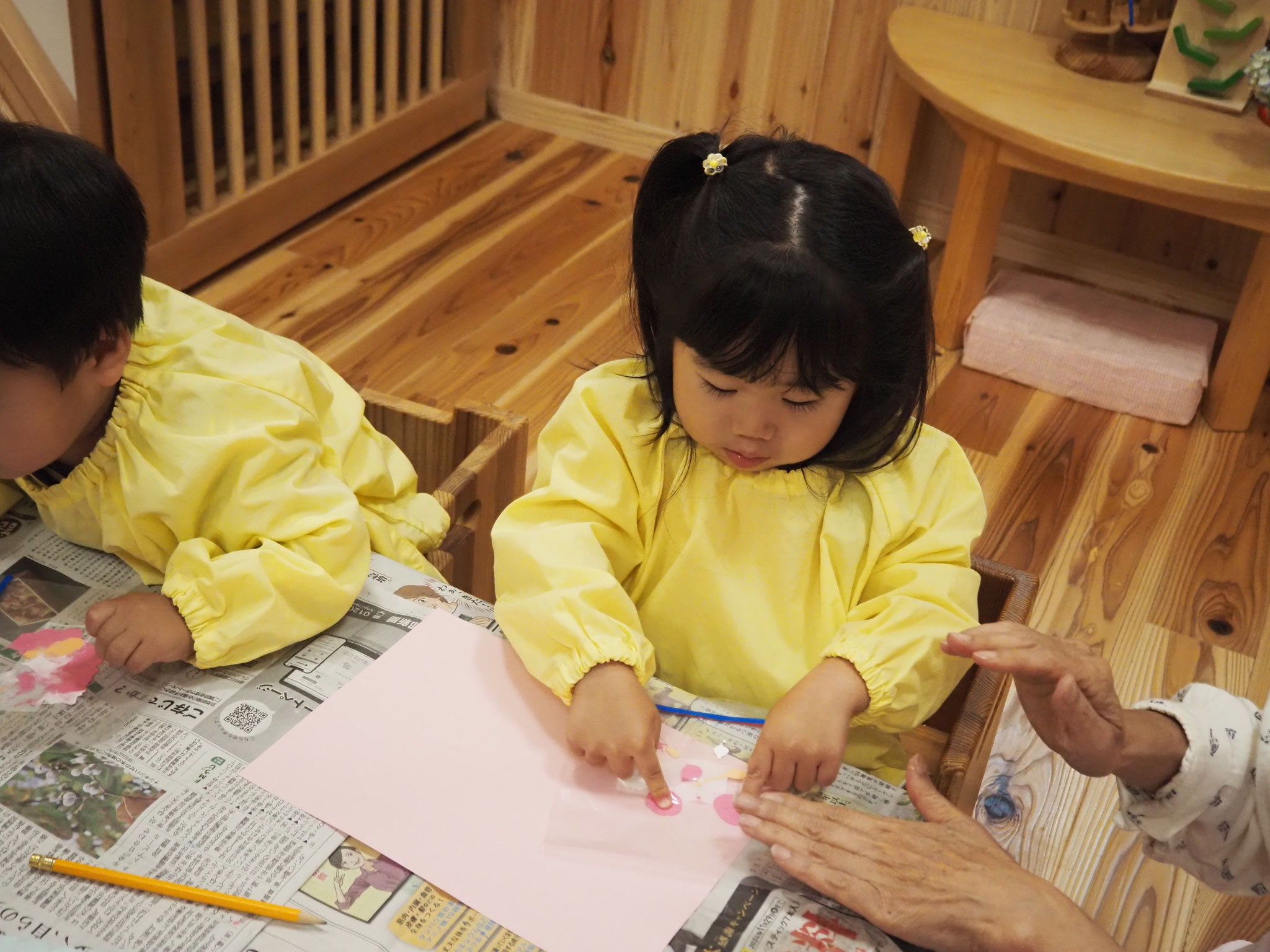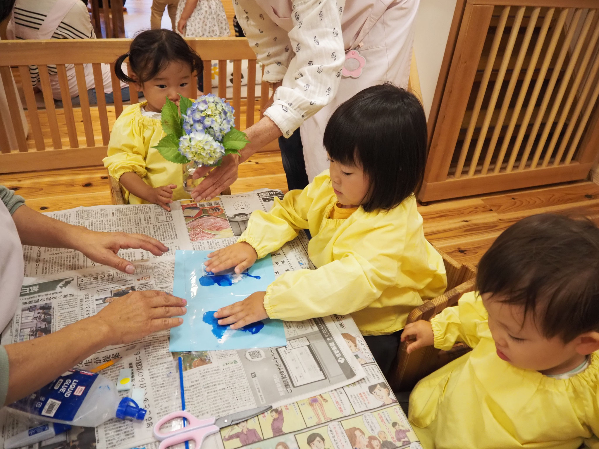 🎐和紙のうちわににじみ絵を楽しみました。お家で涼しい風を感じてくださいね。