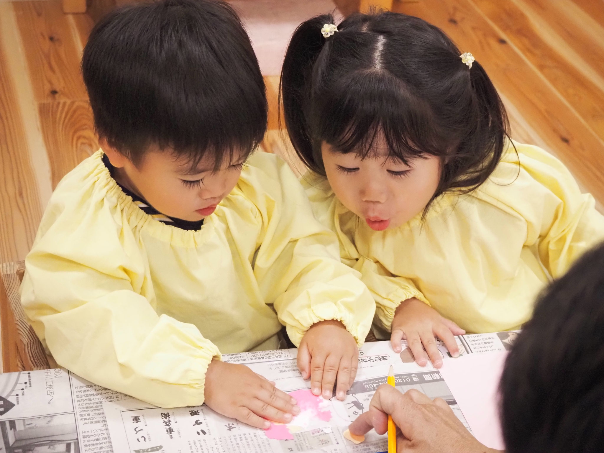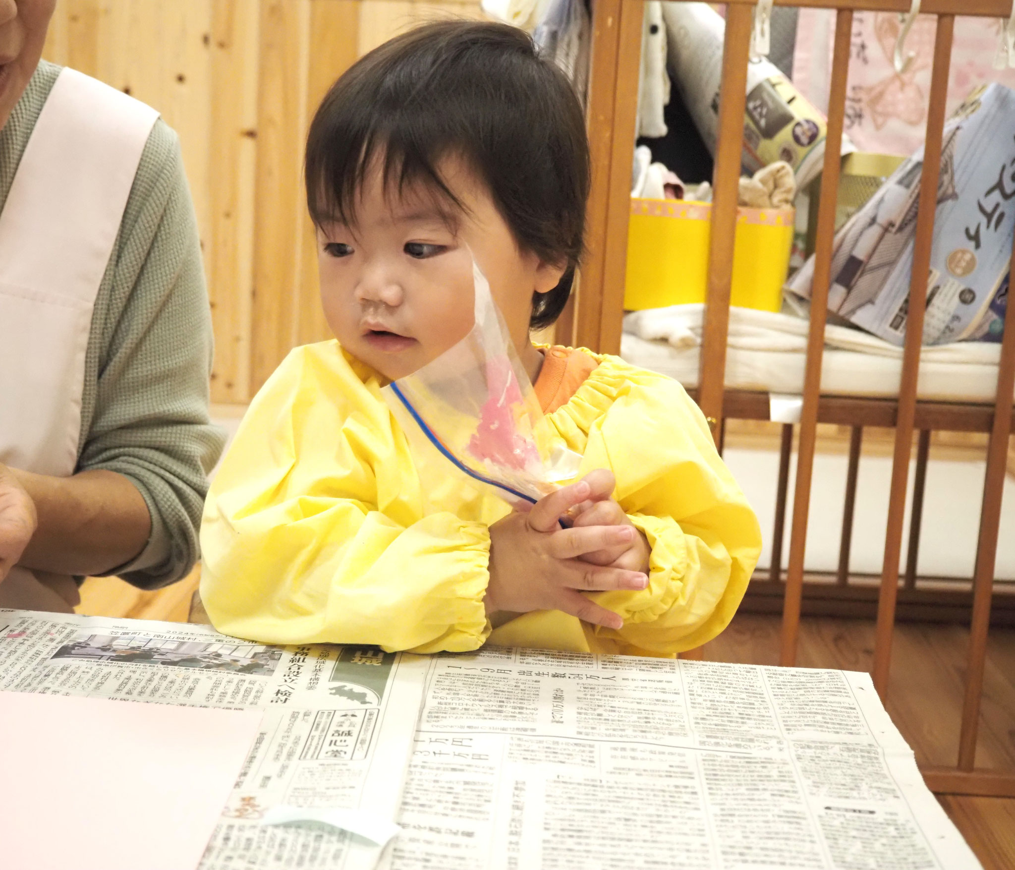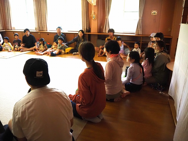 りんごをピカピカに磨き、自分で作ったろうそくを飾ったりんごろうそく。そのろうそくにお父さんお母さんと一緒に火を灯しました。小さな火をキラキラした目で見つめていた子どもたち。その灯りは、とてもきれいでした。先生からのプレゼントは、小人さんとカゴのベッド。