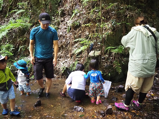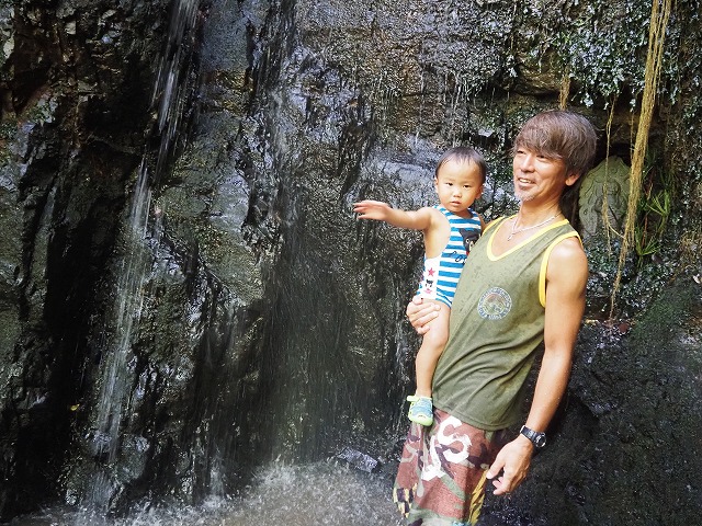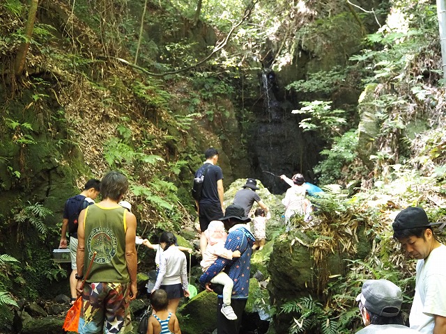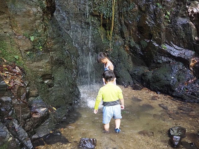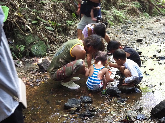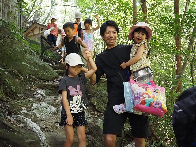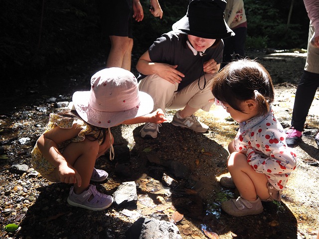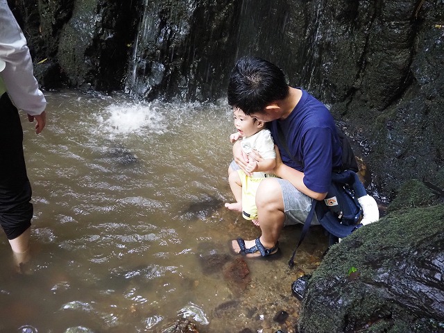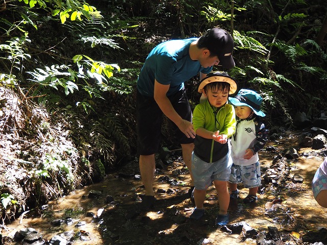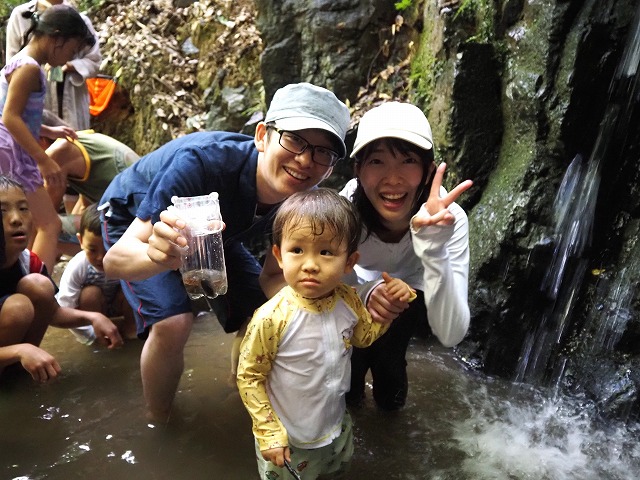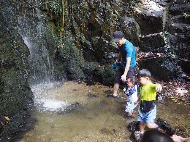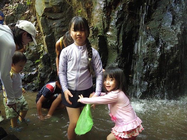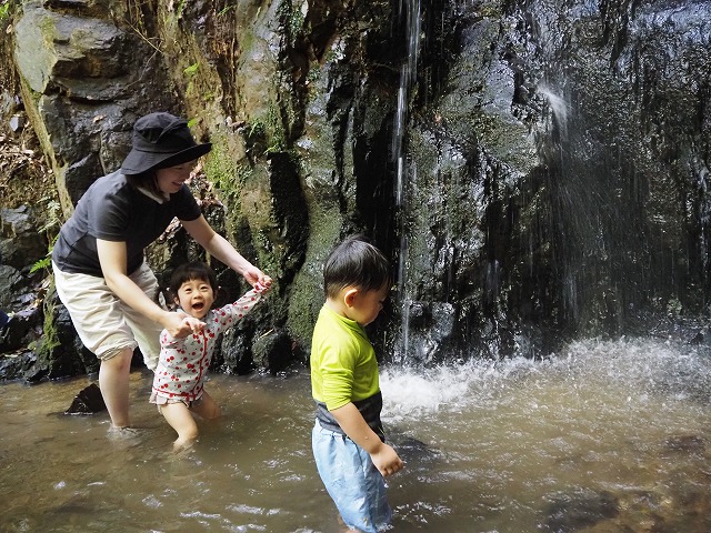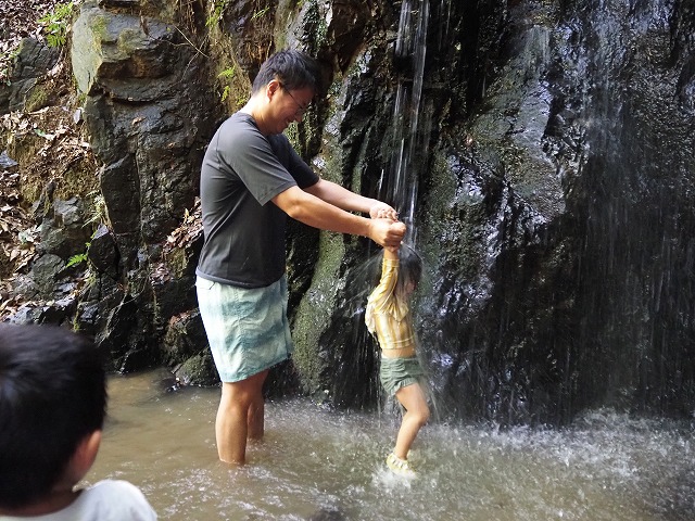 お父さんたちが張り切って沢蟹や、小さな魚を見つけてくれたり、滝に打たれてキャーキャー!楽しい夏の一日を過ごしました。