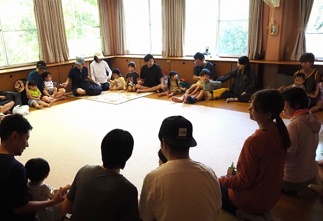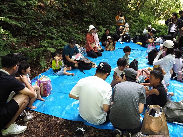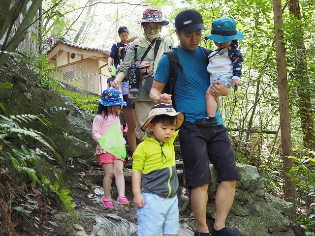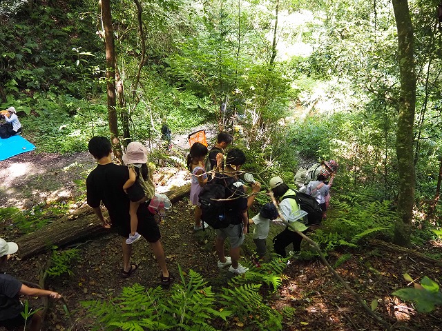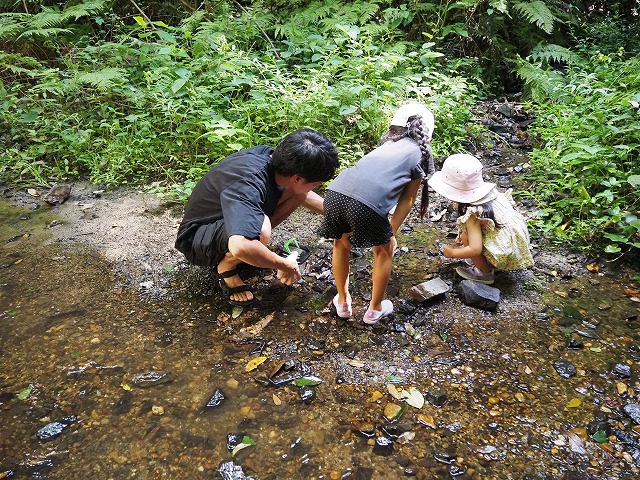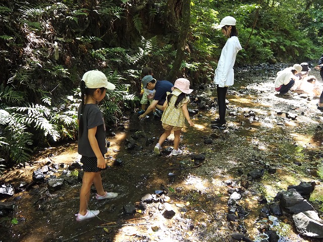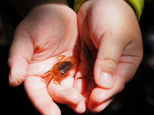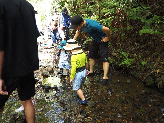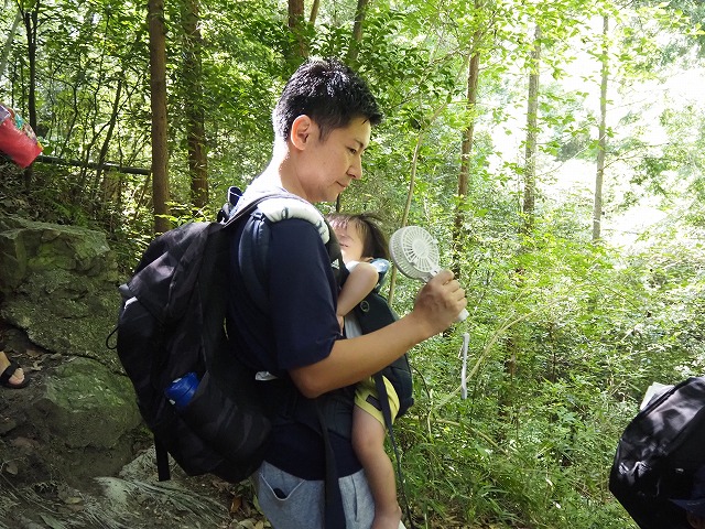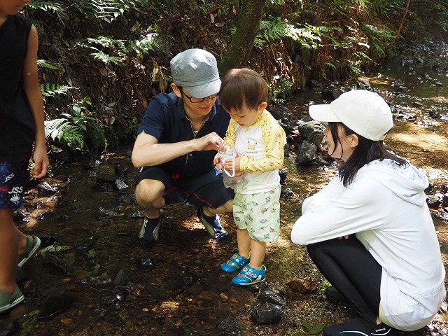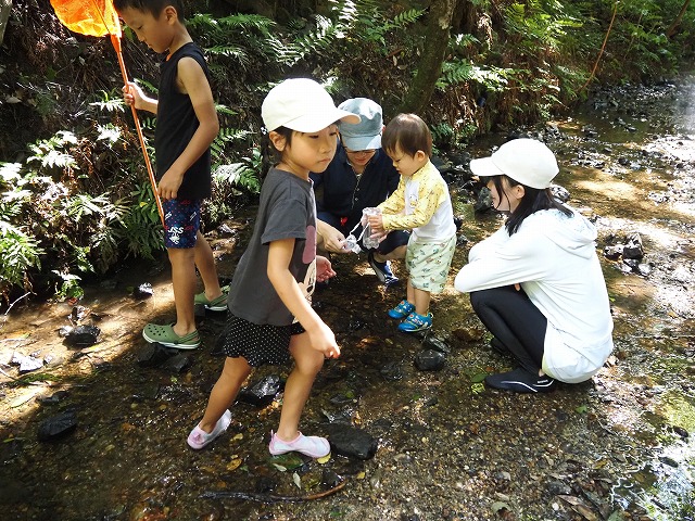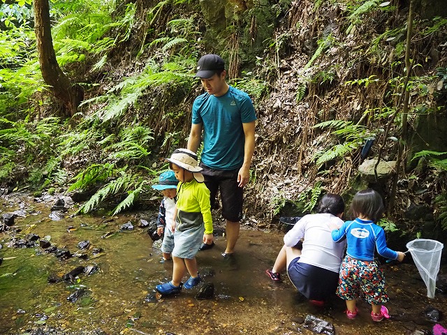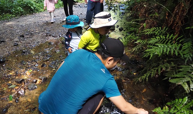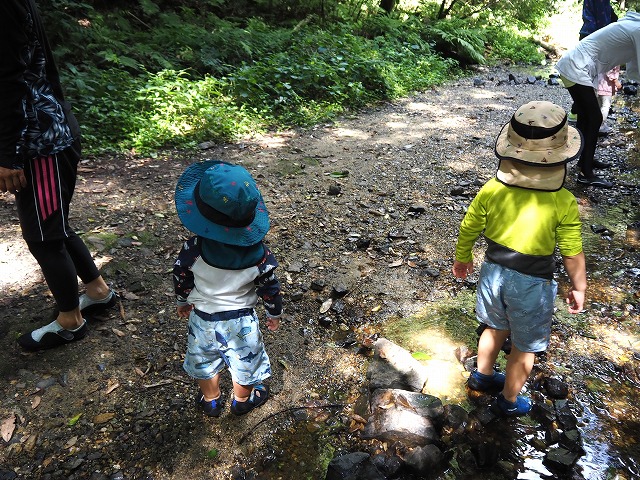 お父さんたちが張り切って沢蟹や、小さな魚を見つけてくれたり、滝に打たれてキャーキャー!楽しい夏の一日を過ごしました。