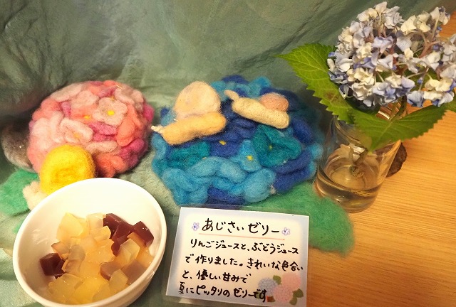 お空のお星さまにお願い事が届きますように…と願いを込めて七夕飾りを作りました。七夕さまのあやつり人形を楽しみ、おやつはお星さまの豆乳ゼリーを頂きました!