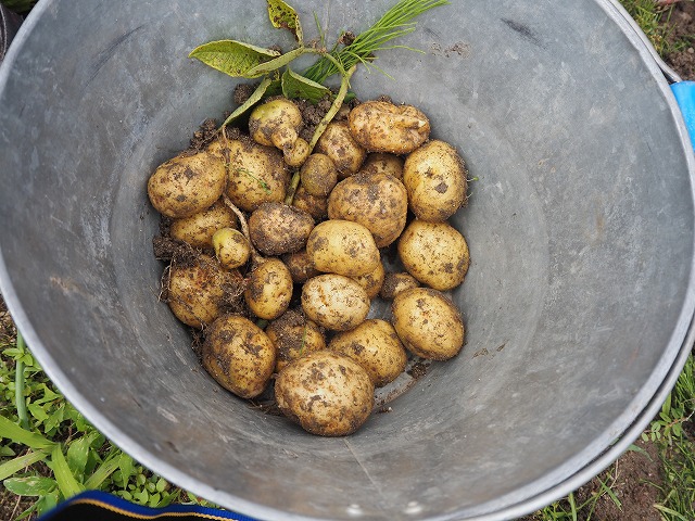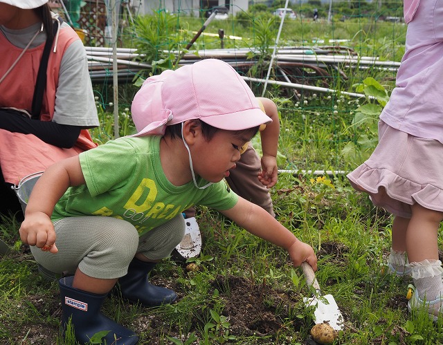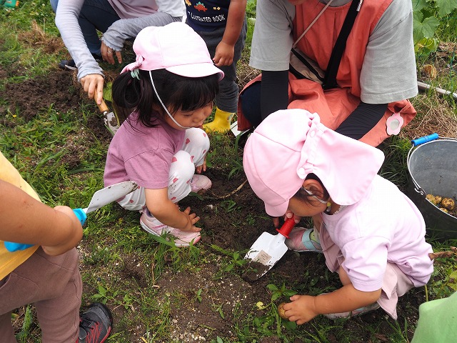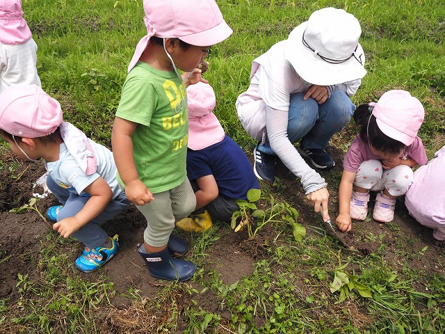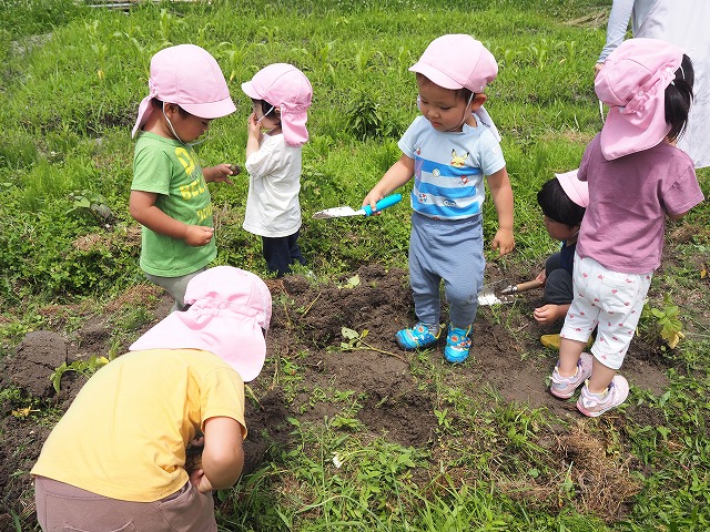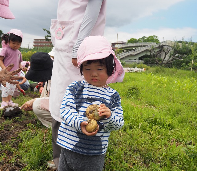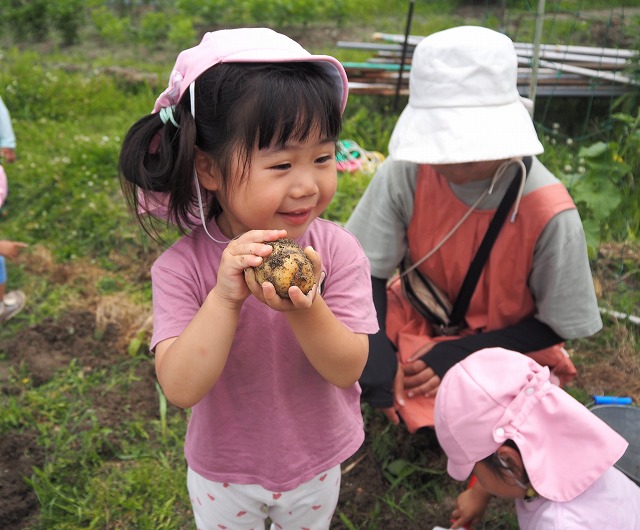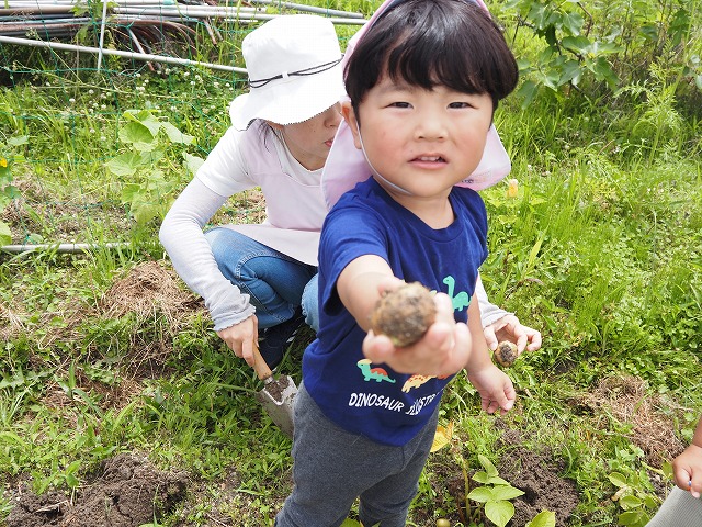 園の畑でじゃがいもを収穫しました。